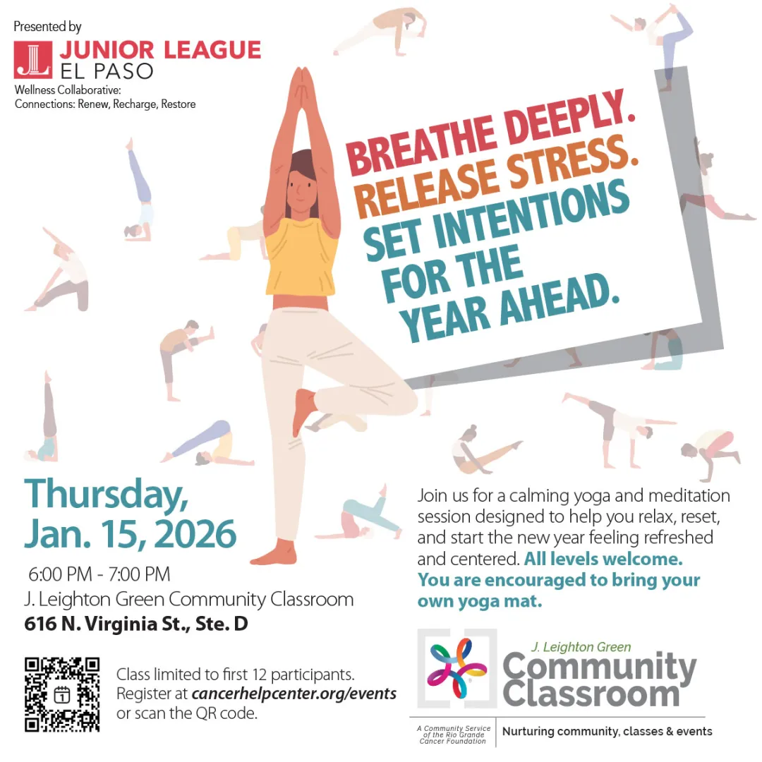Join us for a calming yoga and meditation session designed to help you relax, reset, and start the new year feeling refreshed and centered. All levels welcome. You are encouraged to bring your own yoga mat.